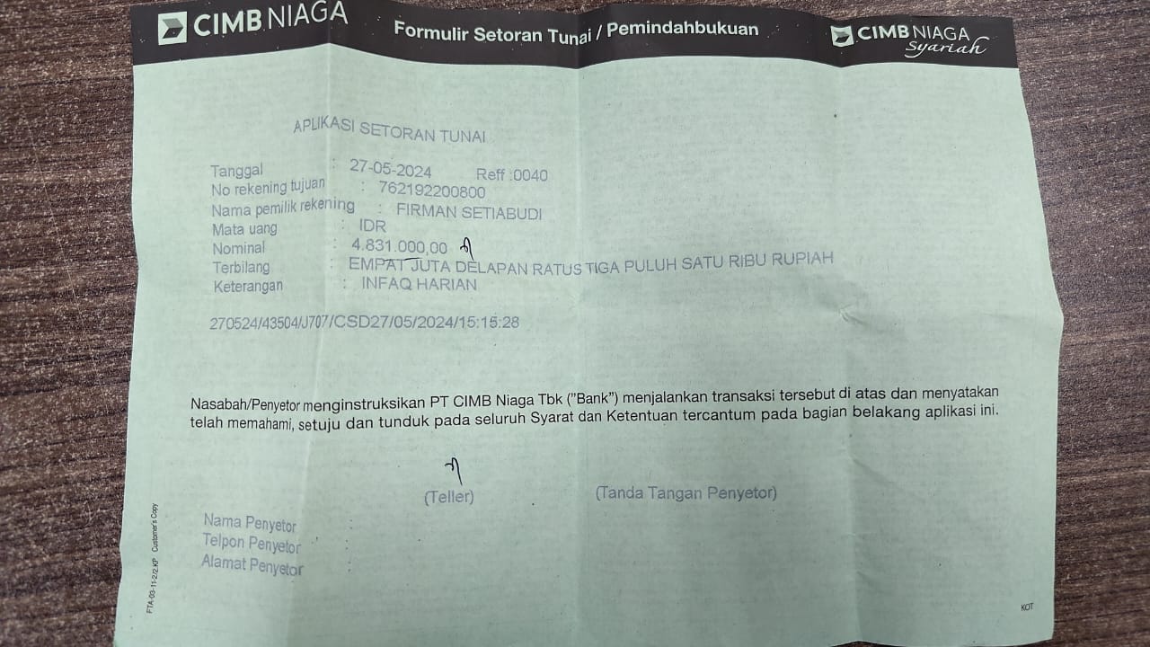 Nama/Tanggal Setor Bank: Tisna Gupita (27 May 2024)