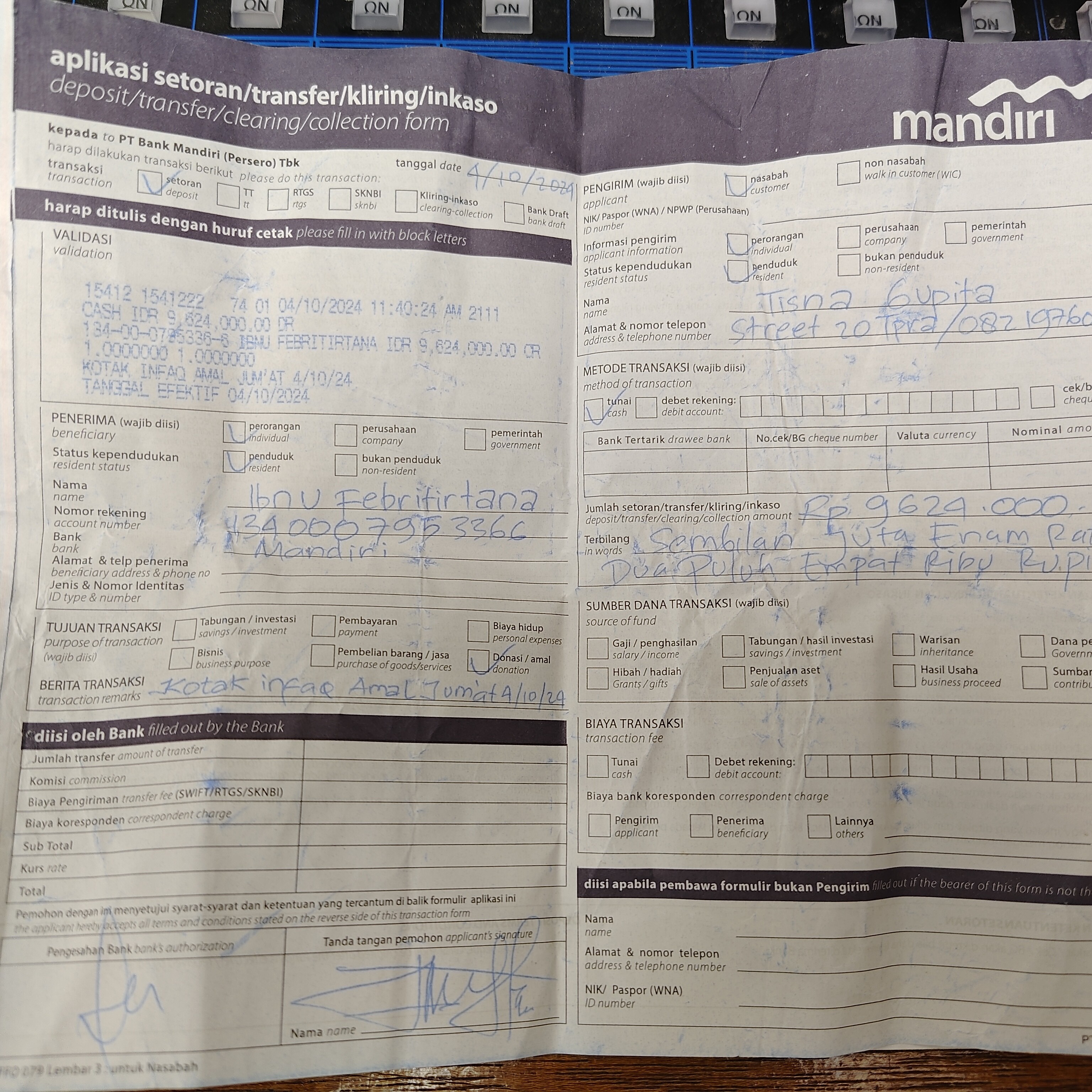Nama/Tanggal Setor Bank: Tisna Gupita (06 Oct 2024)