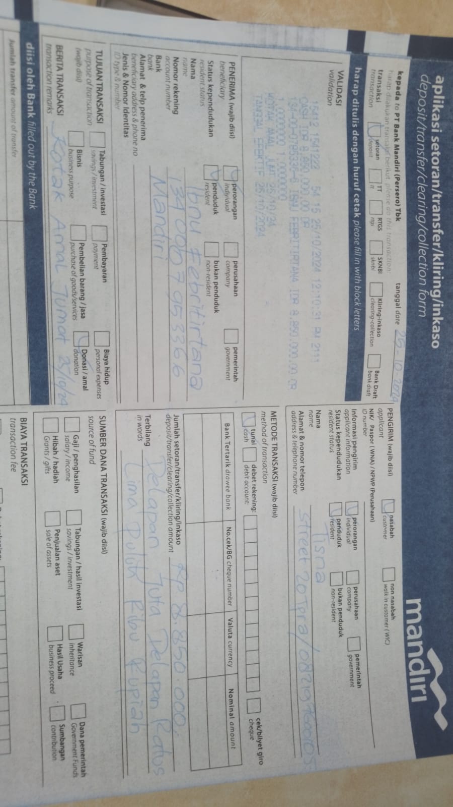 Nama/Tanggal Setor Bank: Dzulkhi Pratama (26 Oct 2024)
