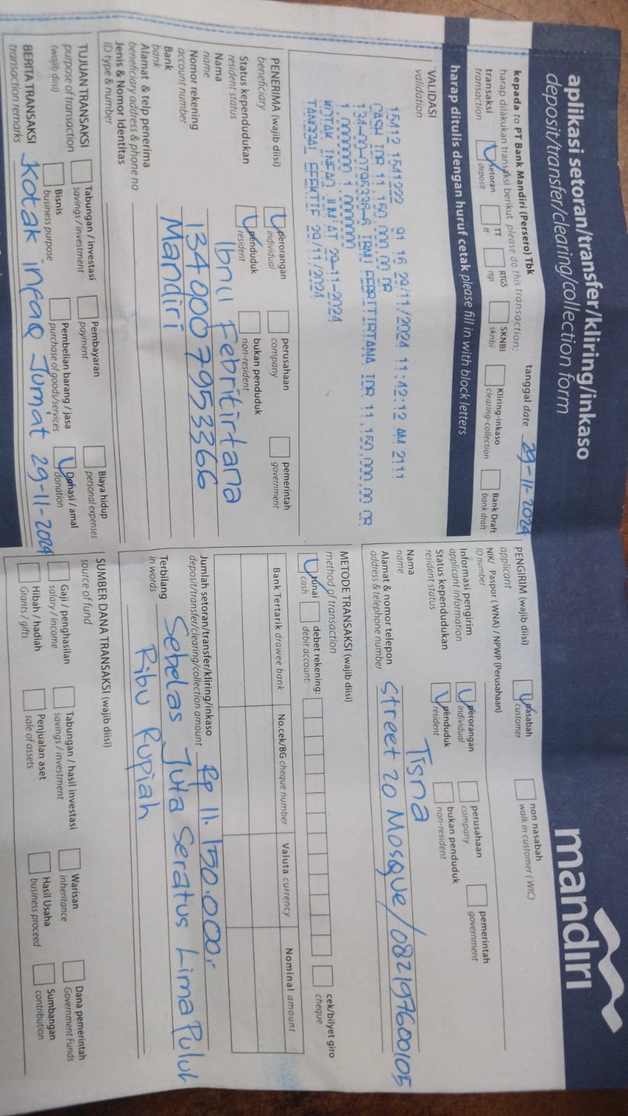 Nama/Tanggal Setor Bank: Dzulkhi Pratama (29 Nov 2024)