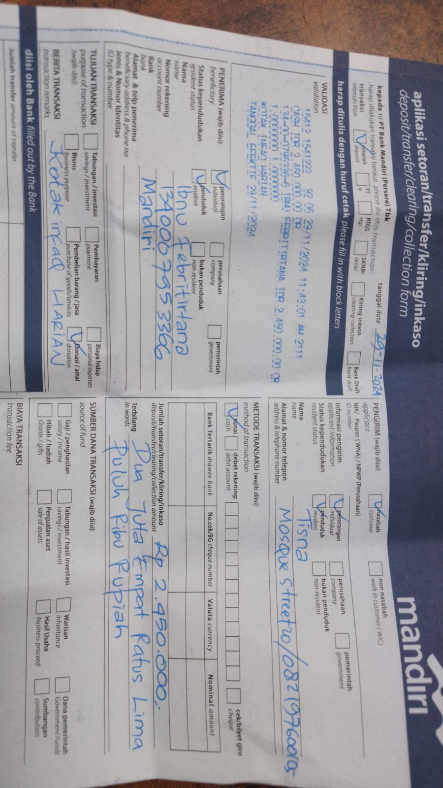 Nama/Tanggal Setor Bank: Dzulkhi Pratama (29 Nov 2024)