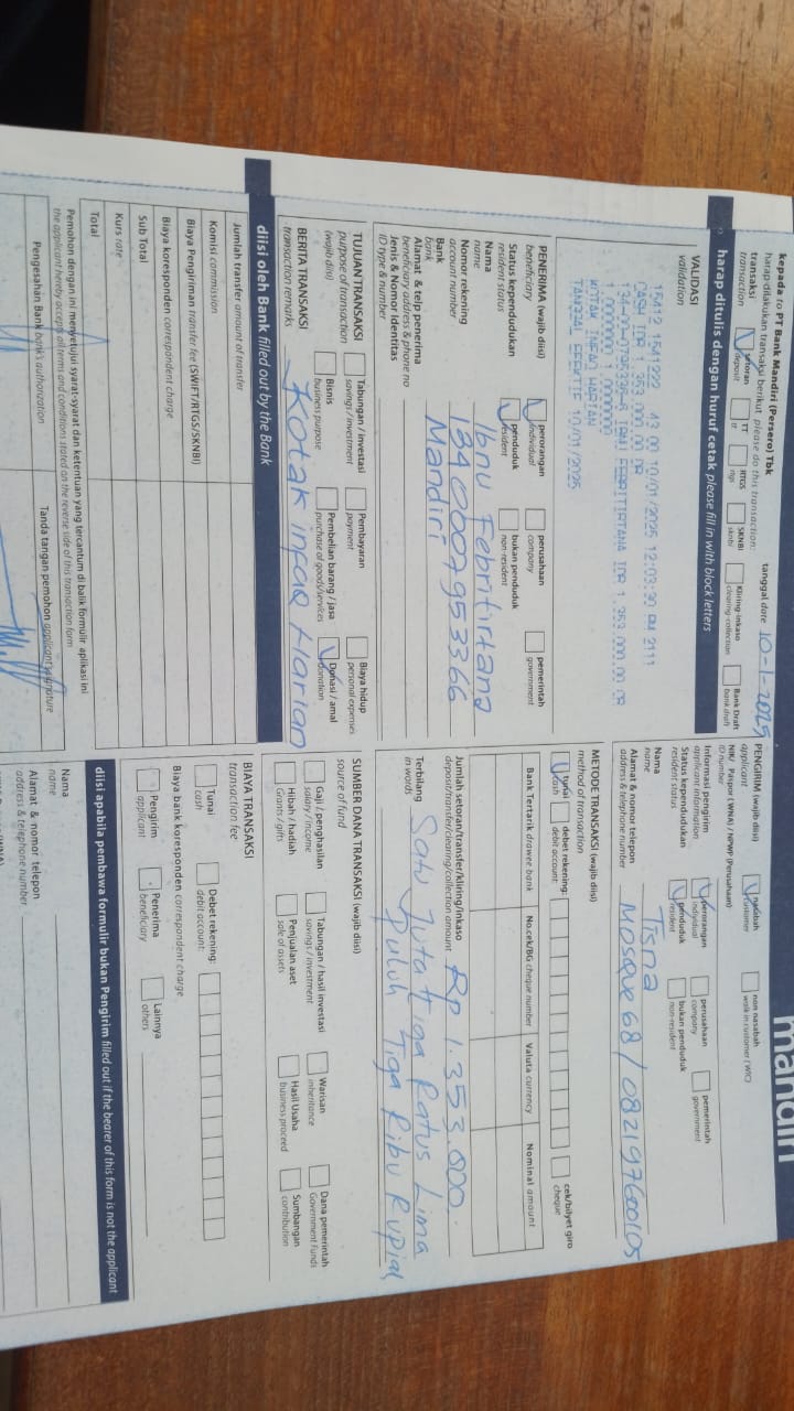 Nama/Tanggal Setor Bank: Tisna Gupita (19 Jan 2025)