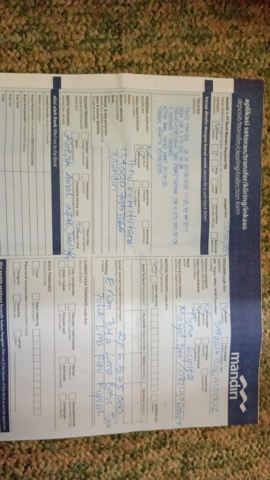 Nama/Tanggal Setor Bank: Dzulkhi Pratama (26 Jun 2025)