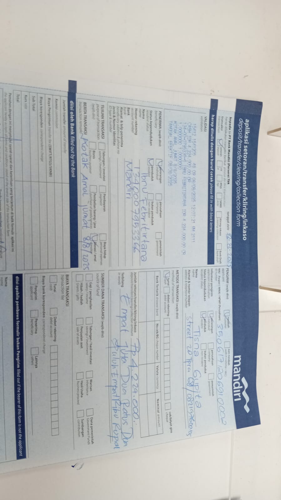 Nama/Tanggal Setor Bank: Tisna Gupita (08 Aug 2025)