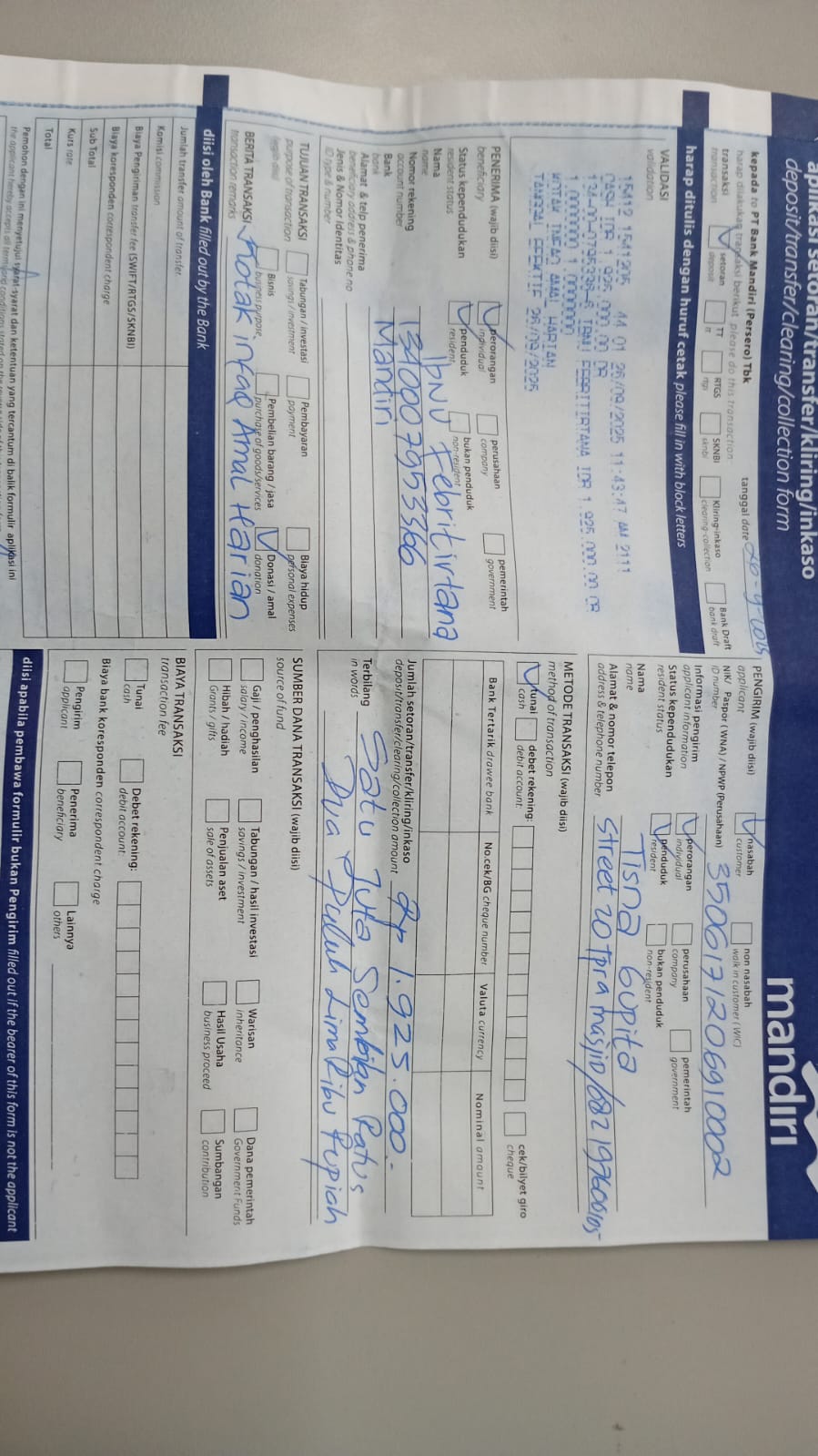 Nama/Tanggal Setor Bank: Tisna Gupita (26 Sep 2025)