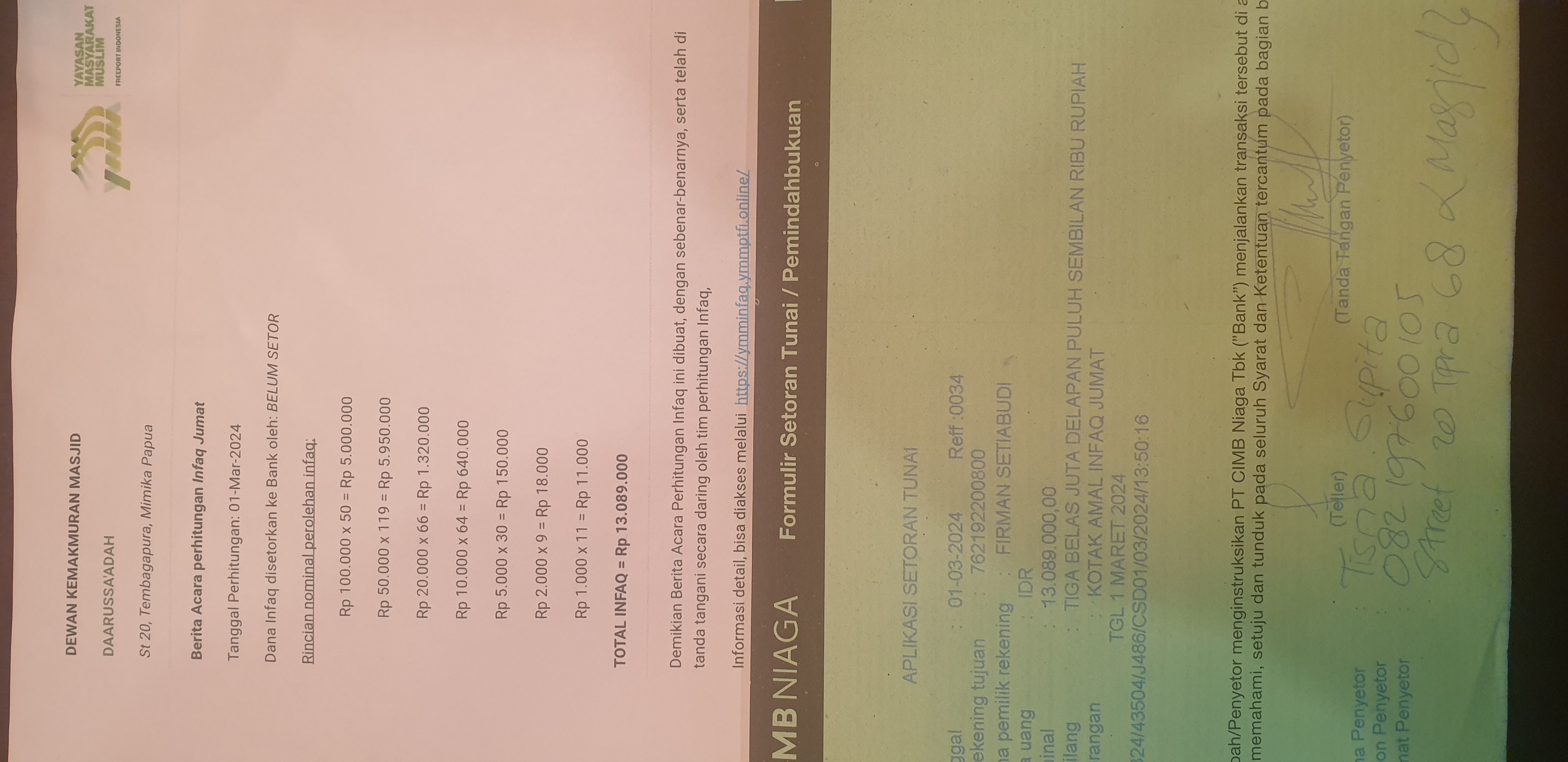 Nama/Tanggal Setor Bank: Tisna Gupita (01 Mar 2024)